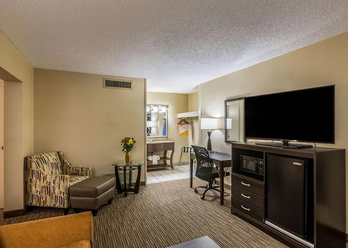 The air-conditioned rooms at Quality Inn University Lansing are fitted with high-speed internet and a TV, some of them feature a fireplace and a carpeted floor. For more comfort, a hair dryer together with a hot tub and a separate toilet are provided.